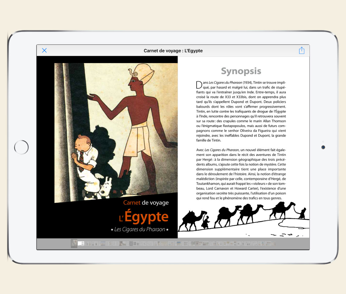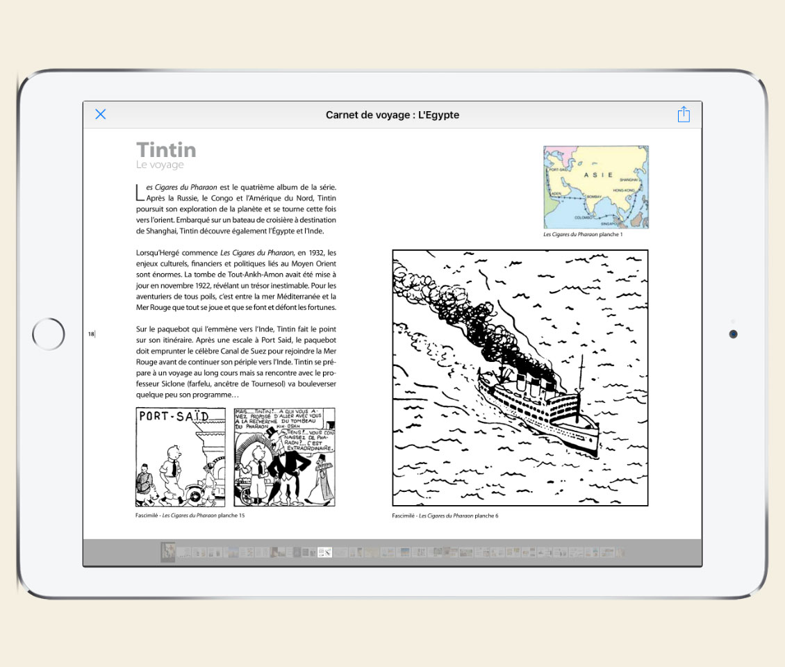 Editée par Moulinsart, cette application permet dorénavant aux fans de Tintin de voyager léger, partout dans le monde, tout en gardant un doigt sur «Tout Tintin» en version numérique de haute qualité.