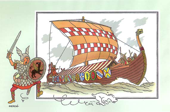 Tintin en Viking et à la tête d’un drakkar… c’est presque un cliché, à la veille de cette nouvelle exposition consacrée à notre héros et à son créateur, à Odense, troisième ville du Danemark, et pourtant Hergé l’a bien dessiné à deux reprises en 1954 et 1982 !