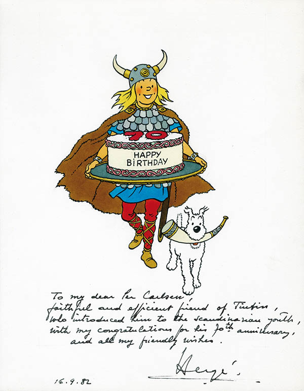 1982: Dessin d’Hergé pour fêter le 70ème anniversaire de Per Carlsen.