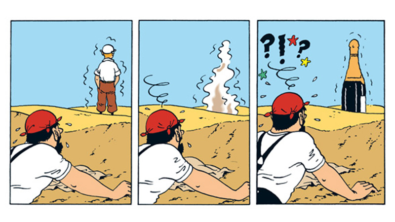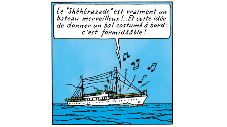 A l’instar de Rastapopoulos sur le yacht Shéhérazade en mer Rouge, dans Coke en stock. Lire le livre : Ports et docks - Coke en stock.