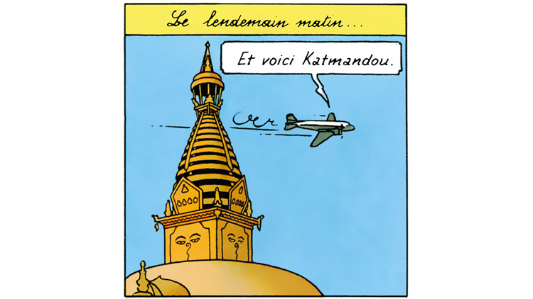 Comme Tintin au début de son aventure dans Tintin au Tibet.