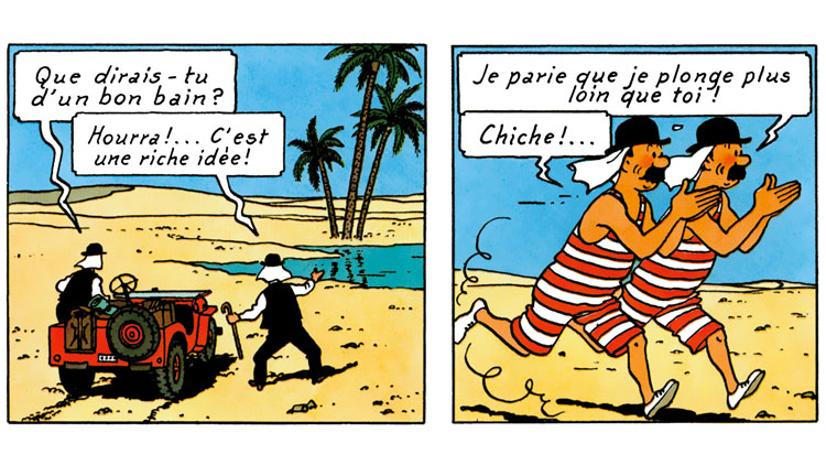 Comme les Dupondt, courant fièrement dans leur costume de bain rayé au look désuet (sweater-culotte).